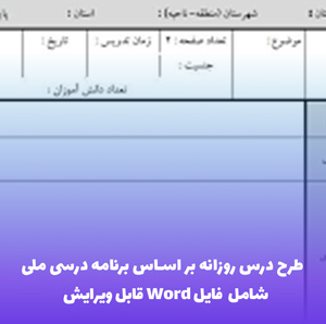 قیمت: 25٬000 تومان - دسته بندی فایل: عمومیطرح درس روزانه بر اساس برنامه درس ملی | فایل Word قابل ویرایش