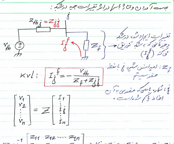 بدست آوردن ولتاژ باسها در اثر تغییرات جدید در شبکه