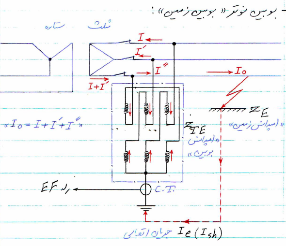 محاسبه جریان اتصالی در شرایطی که بوبین زمین وجود دارد.