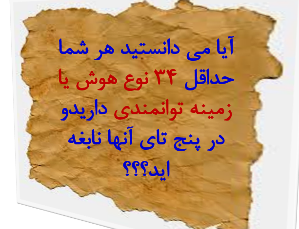 شما کدام پنج نوع هوش را دارید و در آن خود را نابغه می دانید ؟